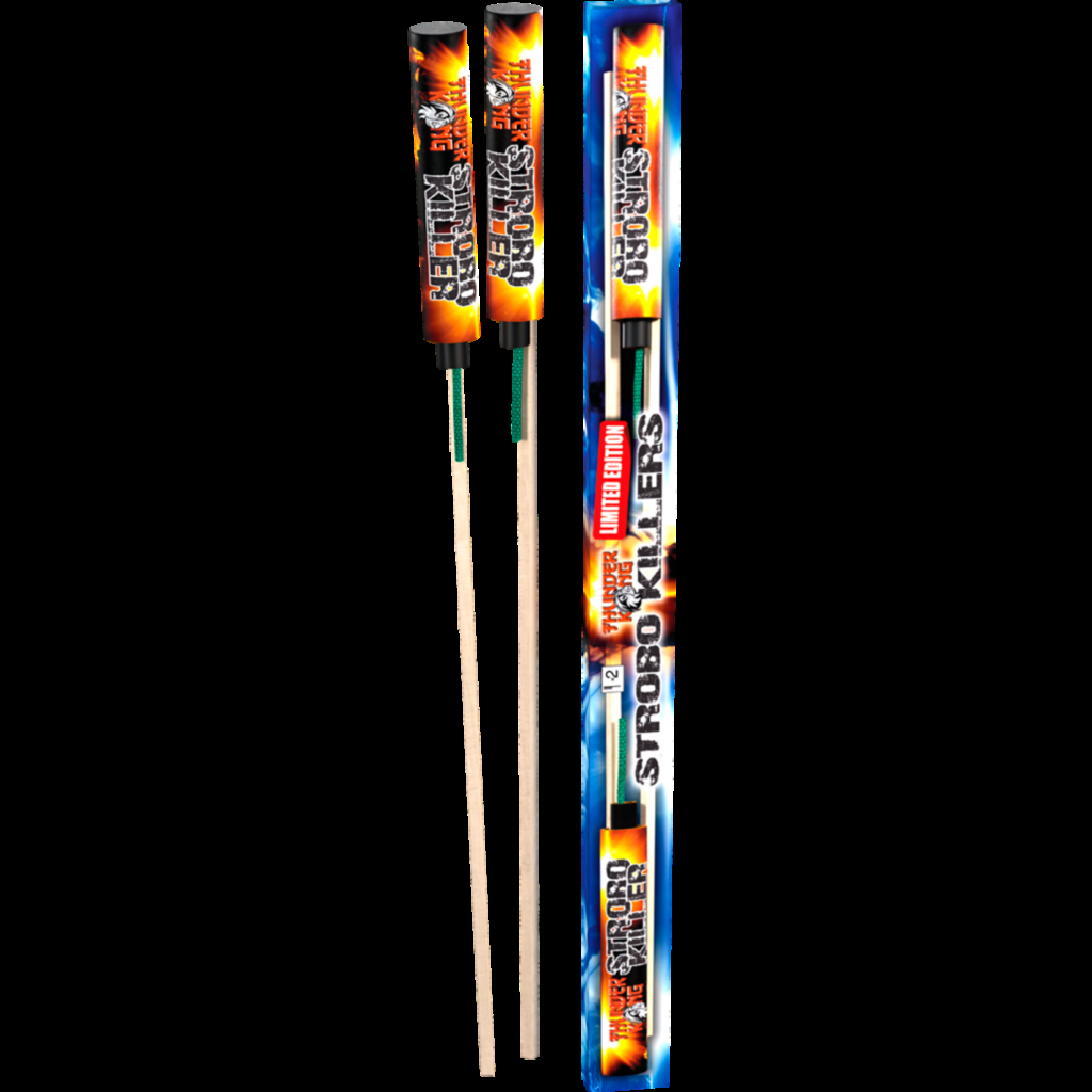 nBombastisch en flitsend! Deze Strobo Killers beginnen met een schel gegil en een verblindend wit stroboscoopeffect. Als afsluiter een harde knal. Gemaakt volgens Amerikaans recept!n nDit product is verboden in Nederland.