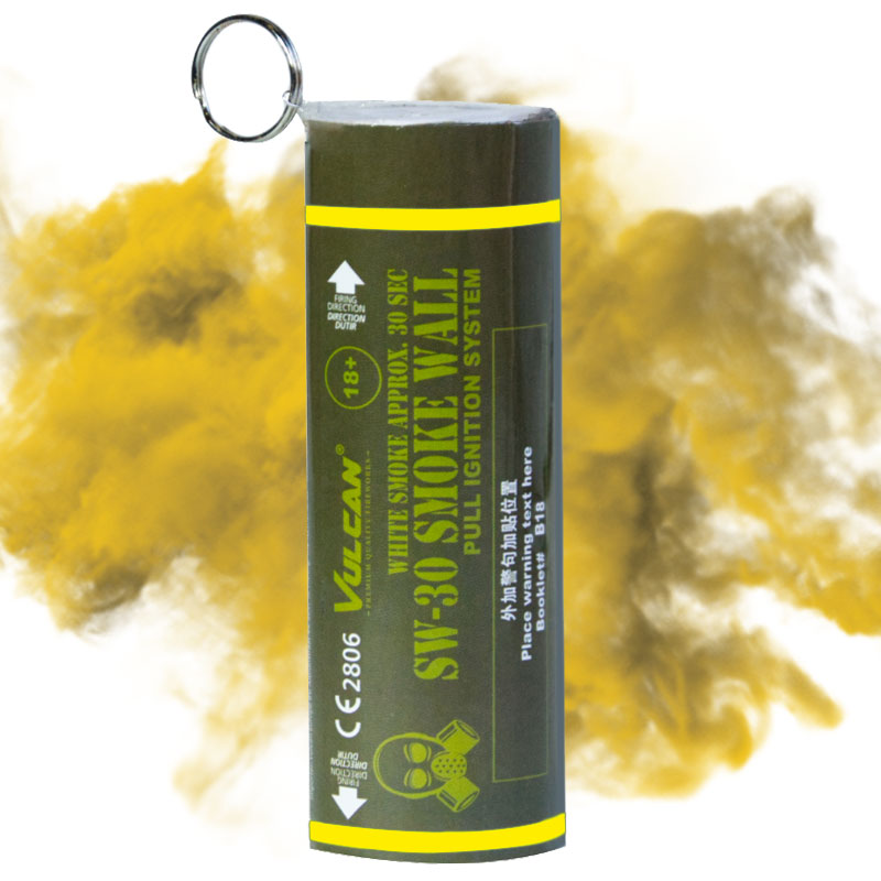 Ontdek de rook muur geel met pin, die 30 seconden levendige rode rook van beide kanten levert. Til elk evenement naar een hoger niveau met deze opvallende, gebruiksvriendelijke rookvertoning.